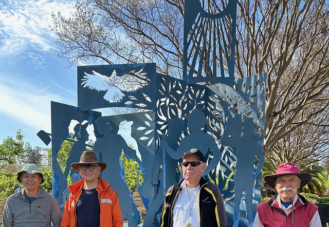 For the first walk in August we plan to walk part of the last of the Sunnyvale public art routes. The date is changed to the Third Friday in August, August 15th, to keep the first walk on the Friday after the Branch 62 luncheon. We will meet at 9:30 AM at Fair Oaks Park, on the east side of the junction of Fair Oaks and Wolfe Road.