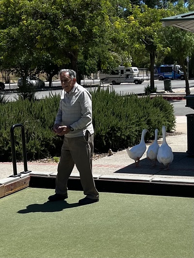 New players to the sport are welcome! Our Host can explain the benefits of Bocce to your health in addition to the game’s enjoyment. Bocce is similar to shuffleboard, but uses small balls that are close in size and weight to that of croquet balls. The sport requires no cost to play. Our chapter provides all equipment needed.