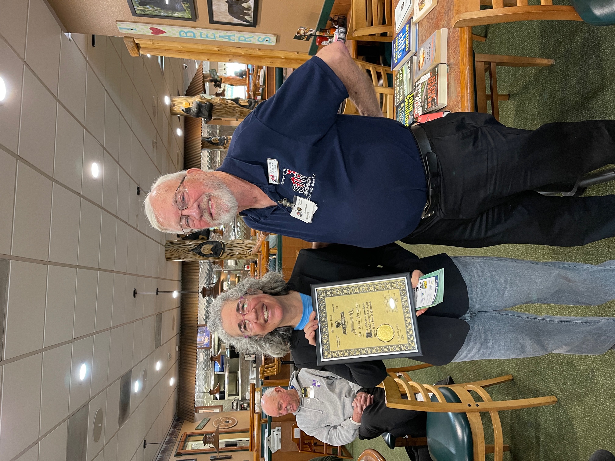 Our March guest speaker was Dr. Anne Ferguson. Dr. Ferguson represents the Bay Area Older Adults organization and described what Health Through Outdoor Education does and why it is synergistic with SIR Branch 62.