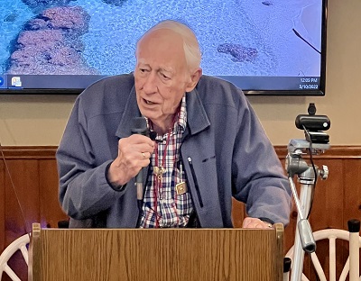 Mr. Richard Holmboe who presented information on three giants of the sea - the gray whale (as big as a big bus), the humpback whale (bigger than a big bus) and the blue whale (bigger than two big buses). Mr. Holmboe's Slides