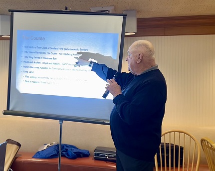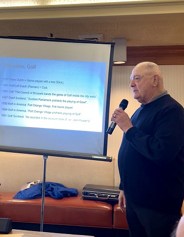 Mr. Tom Kramer from Branch 51. His topic was: The History of Golf - Origins and Evolution of Golf, Equipment and Courses.