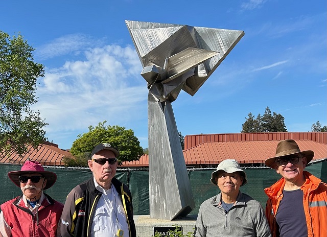 For the first walk in August we plan to walk part of the last of the Sunnyvale public art routes. The date is changed to the Third Friday in August, August 15th, to keep the first walk on the Friday after the Branch 62 luncheon. We will meet at 9:30 AM at Fair Oaks Park, on the east side of the junction of Fair Oaks and Wolfe Road.